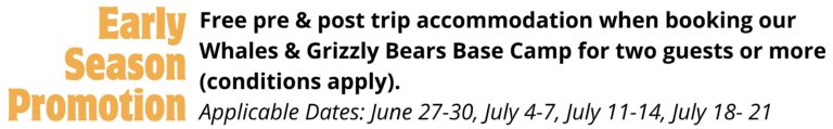 Black Bear Resort: (opens in a new tab) We can arrange your pre and/or post night accommodations in Port McNeill at the Black Bear Resort